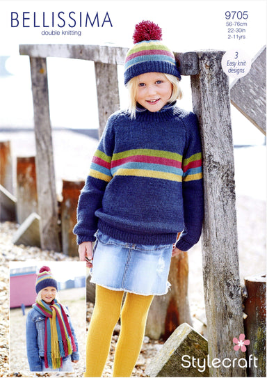Knit a beautiful cardigan, scarf and hat in the gorgeous Bellissima DK from Stylecraft.