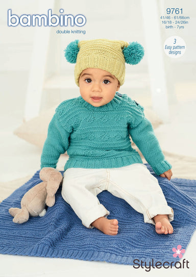 Knit this beautiful sweater, hat and blanket in the gorgeous Bambino DK from Stylecraft.