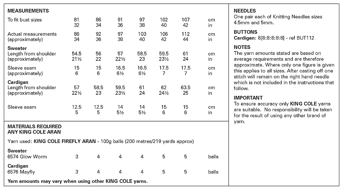 | Yarn | King Cole Firefly Aran |