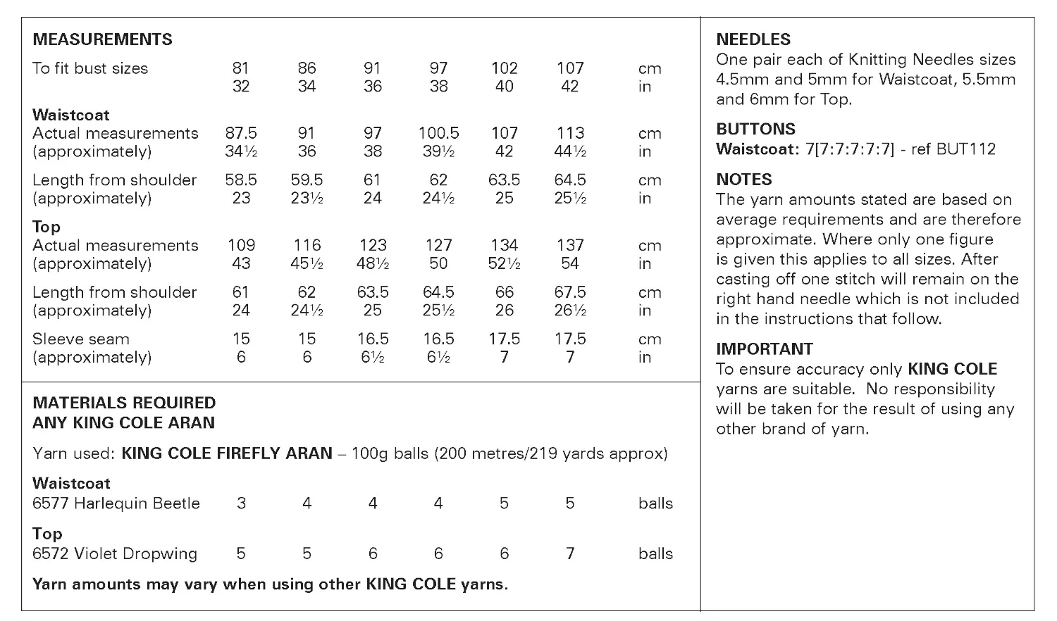 | Yarn | King Cole Firefly Aran |