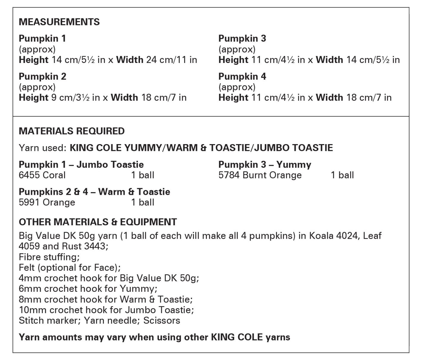 | Yarn | King Cole Yummy King Cole Toastie King Cole Jumbo Toastie |