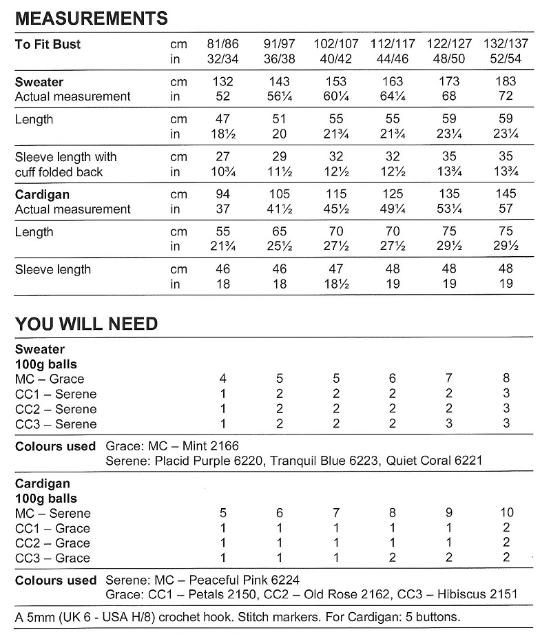 | Yarn | Stylecraft Grace Stylecraft Serene Aran |