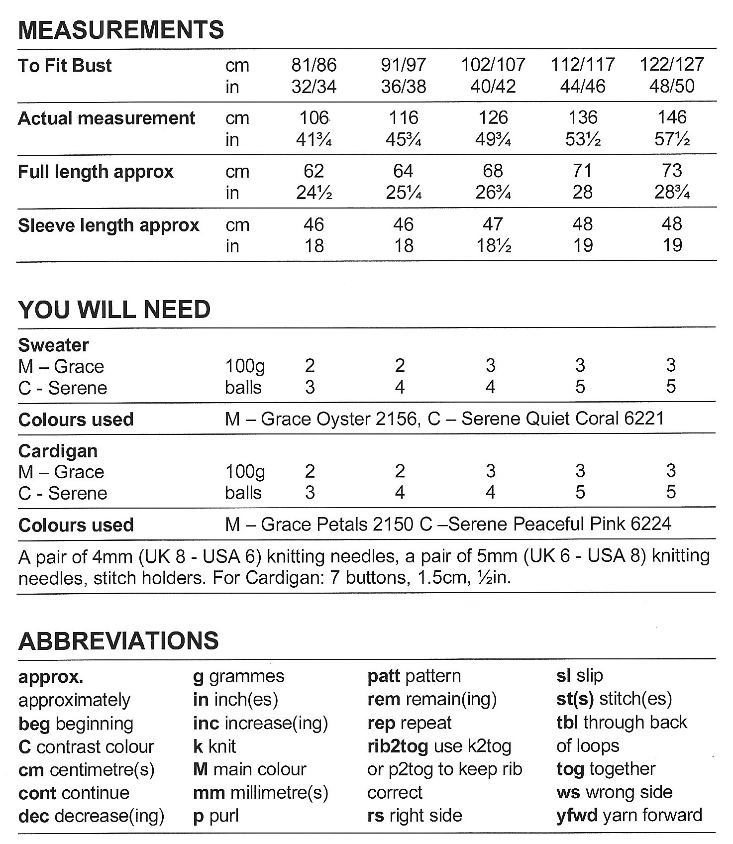 | Yarn | Stylecraft Grace Stylecraft Serene Aran |