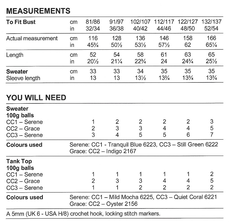 | Yarn | Stylecraft Grace Stylecraft Serene Aran |